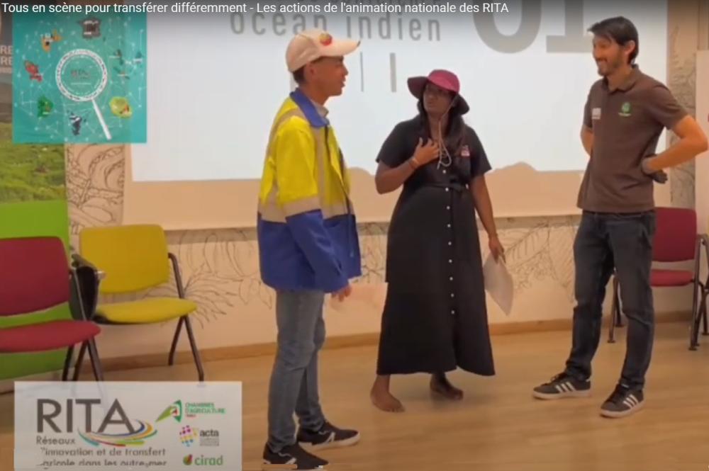 L’animation nationale des RITA a été invitée à proposer des ateliers autour du TRANSFERT DES PRATIQUES AGRICOLES INNOVANTES, dans le cadre du Séminaire EcophytoDOM qui s’est tenu à La Réunion les 25 et 26 novembre 2024. Ainsi, les participants ont pu choisir entre trois ateliers mêlant apports théoriques et mise en pratique collective. Découvrez dans cette vidéo une pratique inédite dans la manière de diffuser les innovations techniques. Cet atelier « Pratiques nouvelles pour transférer : les saynètes » invite les participants à oser faire un pas de côté pour tester de nouvelles modalités de transfert. Ici, place à la mise en scène des acteurs du transfert, pour mieux faire passer les messages techniques auprès des agricultures et des conseillers. Deux autres ateliers sont à découvrir sur cette page Youtube : Atelier « Sensibilisation à l’évaluation de l’impact » & Atelier « Fresque du Transfert agricole dans les Outre-mer ».